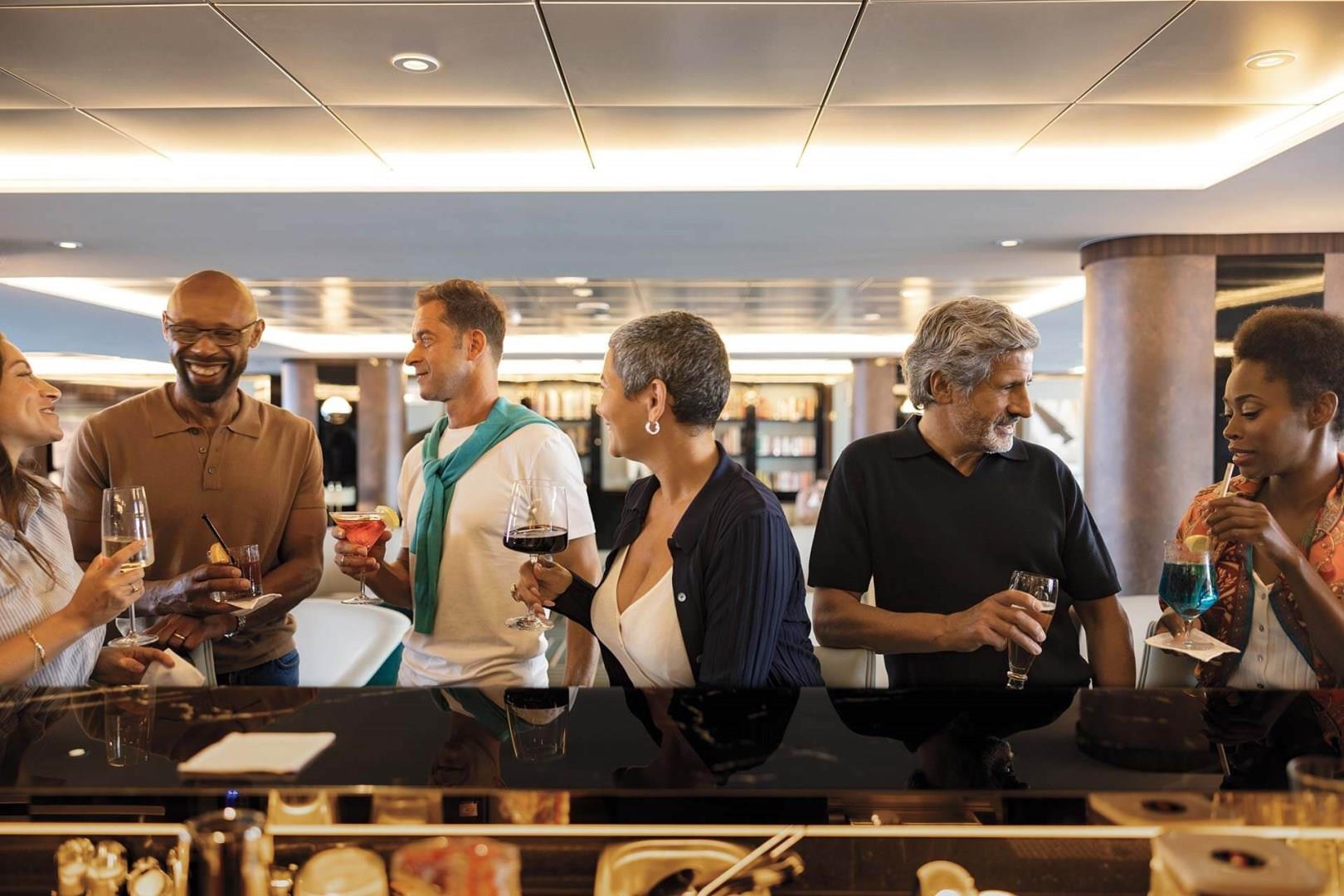 Open bars and lounges, including 24-hour bar service with specialty appetizers, are always included. Get to know your fellow explorers with champagne and gourmet canapés during a meet and greet. Enjoy a leisurely evening swapping stories or looking out on the horizon from spacious decks. An ambiance of relaxed luxury invites you to savor each moment of the journey, allowing for deeper connections as you mingle with new friends.